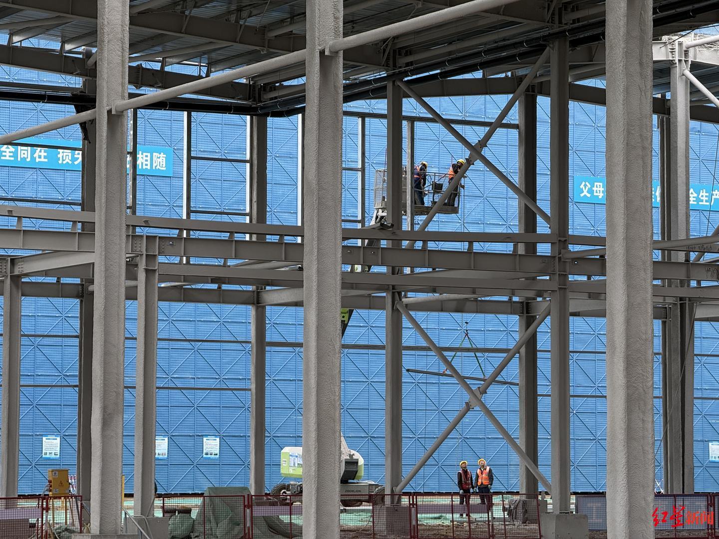步入德阳北车辆段的停车列检棚,眼前是一片“钢铁丛林”,数百根钢柱整齐排列,蔚为壮观。