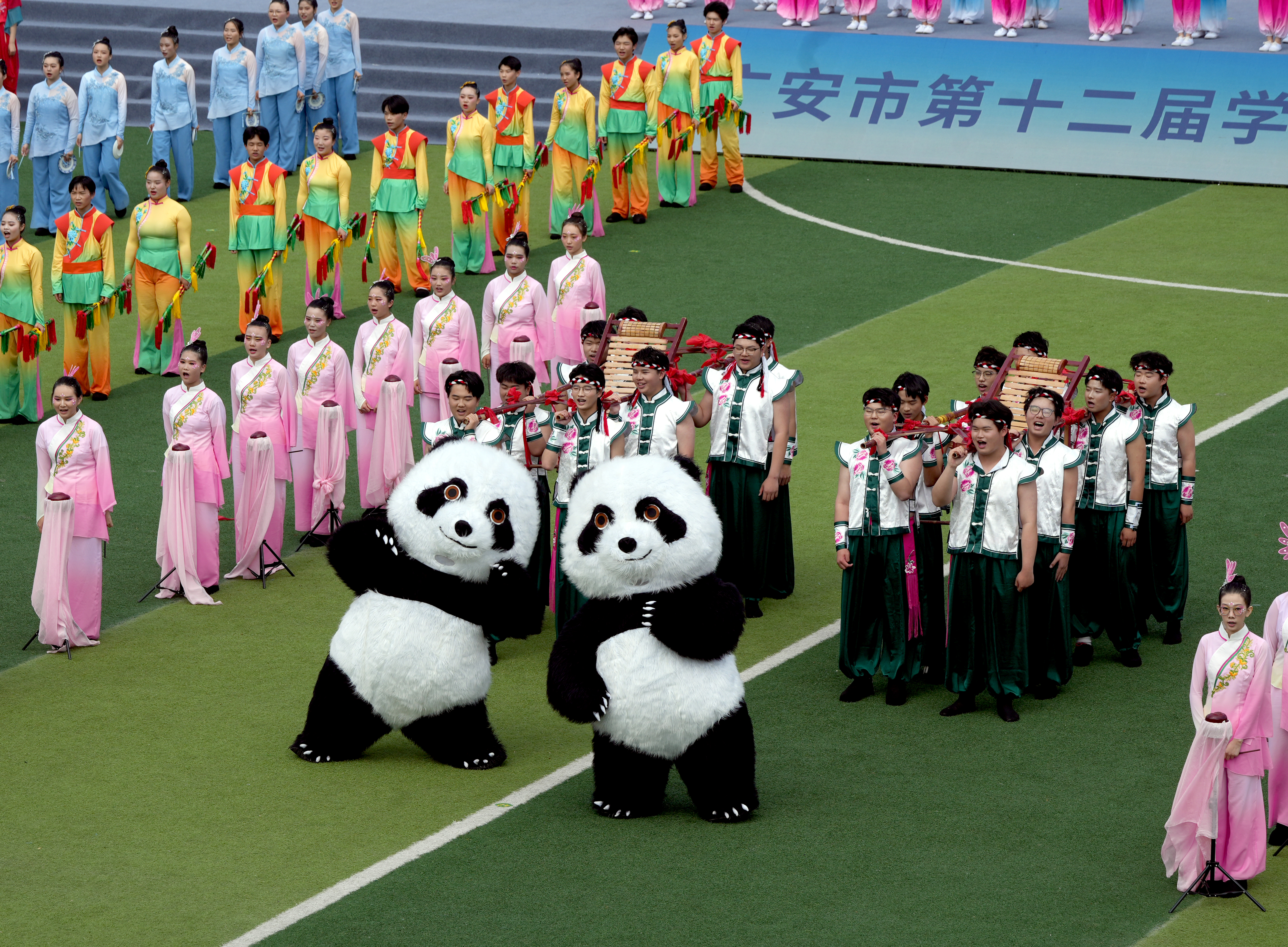 上午10点整,开幕式正式开始。国旗方队、会旗方队、彩旗方队依次入场,拉开入场仪式序幕。随后,来自广安区、前锋区等8个代表团方阵,迈着矫健的步伐依次通过主席台。入场仪式后,一场气势恢宏、极具华蓥特色的大型文体展演精彩上演。演出通过《蓥光山水·绿韵新生》《烽火年华·红色铸魂》《芳华非遗·文脉传承》《征途少年·蓝梦启航》等多个主题篇章,将华蓥的生态底色、红色基因、非遗与青春梦想巧妙融合。两千余名师生全情投入,通过情景表演、非遗展示、科技互动等形式,生动演绎了华蓥的绿色生态、红色精神、非遗传承与少年梦想,展示了华蓥深厚的历史文化底蕴和蓬勃向上的城市风采。