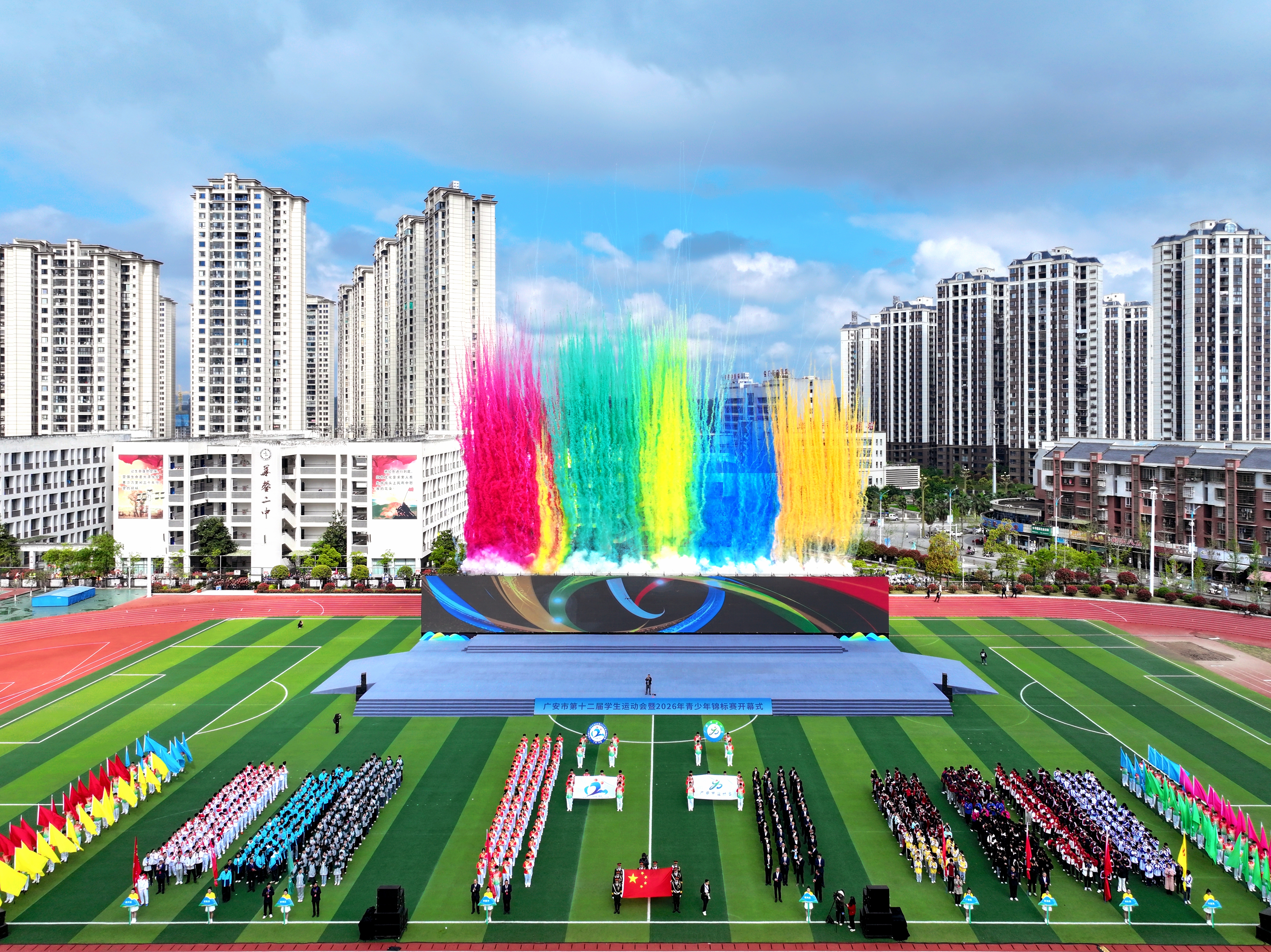 3月26日,广安市第十二届学生运动会暨2026年青少年锦标赛在华蓥开幕。来自全市各地的青少年体育健儿齐聚红岩故里,以青春之名,赴时代之约,共同开启这场激情洋溢的体育盛会。